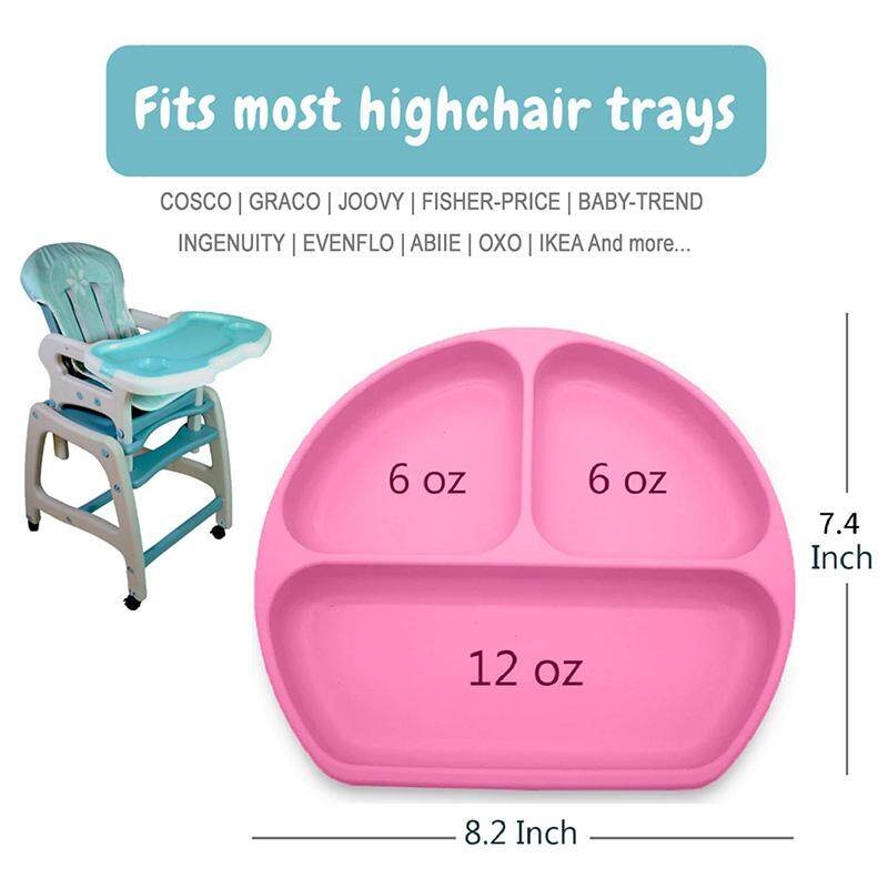 USER-FRIENDLY DESIGN: This cute round rubber suction cup plates for toddlers mini mat designed to make your lives easier and to fit most high chair trays. Clean it easily and effortlessly, dishwasher safe!