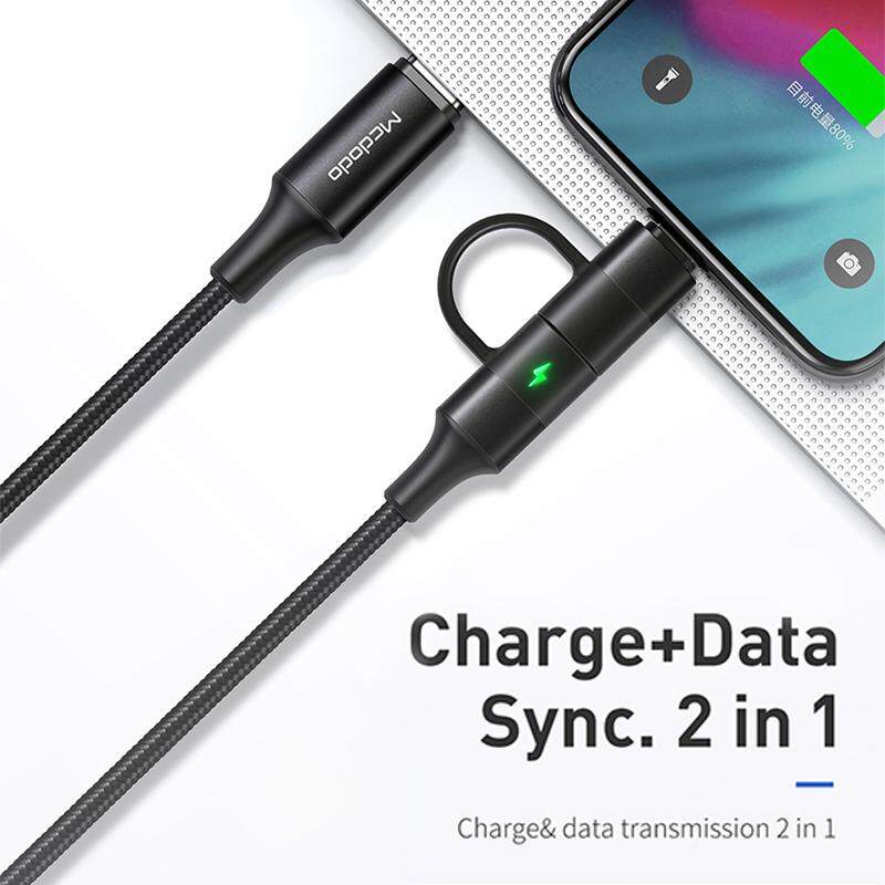 Mcdodo USB C Cable TO Type-C +iPhone lightning Cable 2 in 1 PD 60W For iphone 11 12 13 pro max iPhone X 8 Plus XR XS MAX Fast Charging Cable For Samsung huawei Mate 20 Pro P30 Pro Xiaomi Charger D