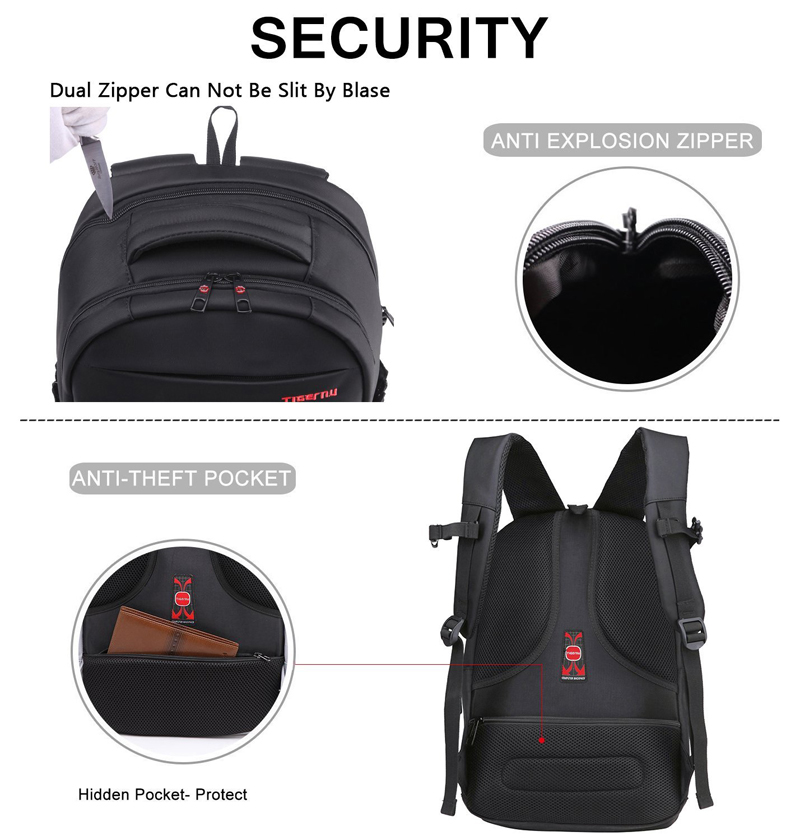 Tigernu Water Resistant Nylon Multifunction Travel Laptop Backpack Fit for 17inches Laptop (3032Black Size L )