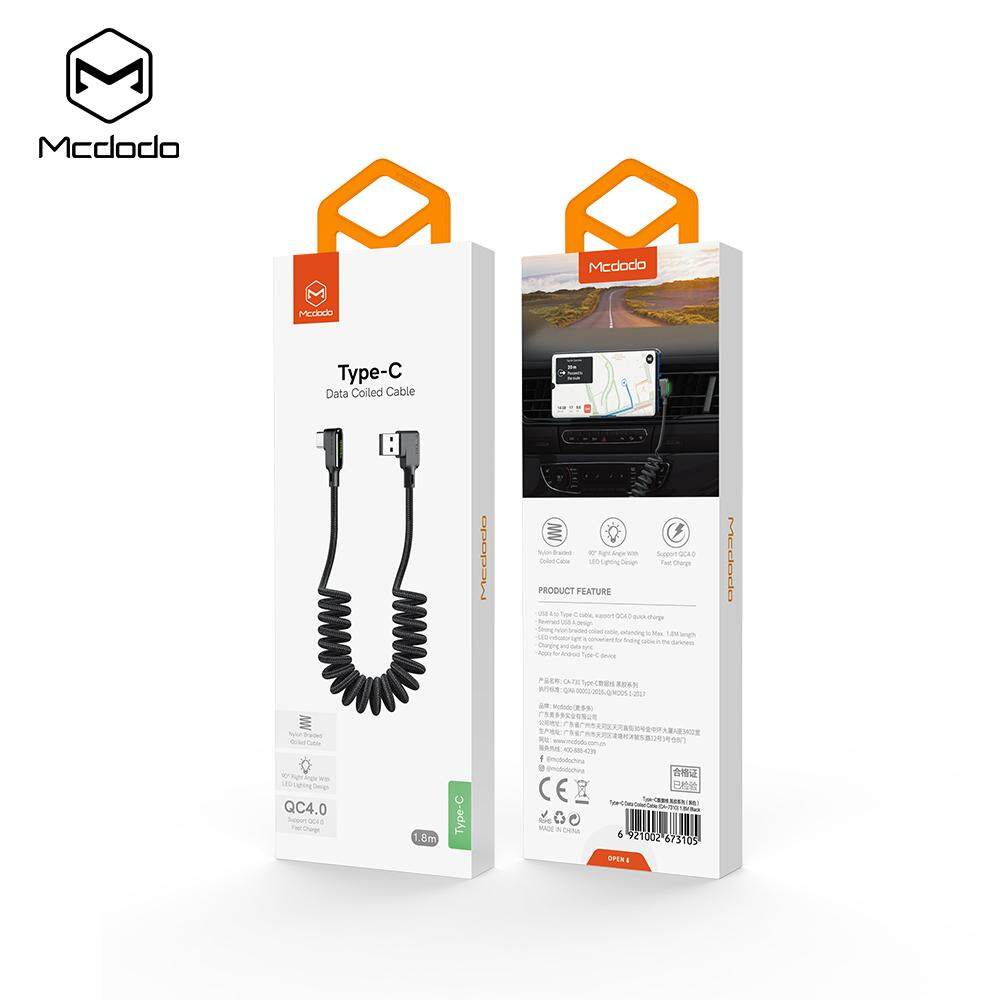 Mcdodo Retractable Car Spring Type C 3A USB Cable for Huawei Xiaomi Samsung One Plus Quick Charge 4.0 Charger Data LED Cable