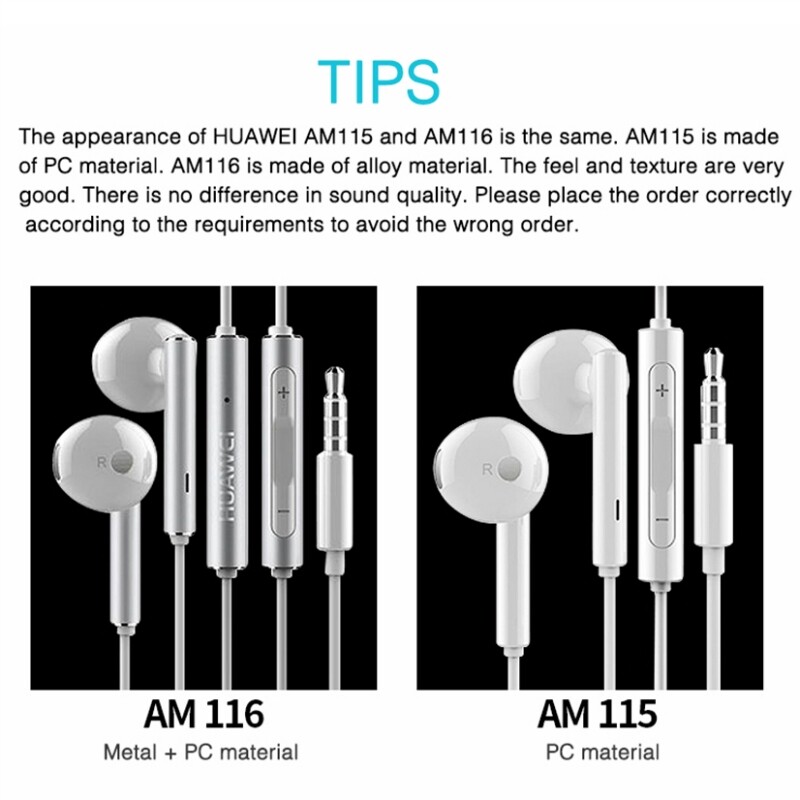 HUAWEI Earphone AM116 Original Wired In-Ear Earphones Full Bass Headset | 3.5MM Jack Headphone | 3-Button With Mic Volume Control | For P30 P20 P10 Mate10 Nova 4e 3i 2i Y9 Max