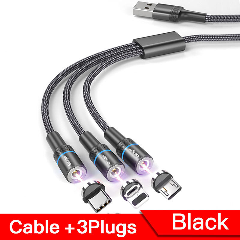 Essager 1.2meter 3 in 1 Magnetic USB Cable Micro USB+Type-C+ Lightning Compatible with iPhone Samsung Mobile Phone Fast Charging Magnet Charger cable