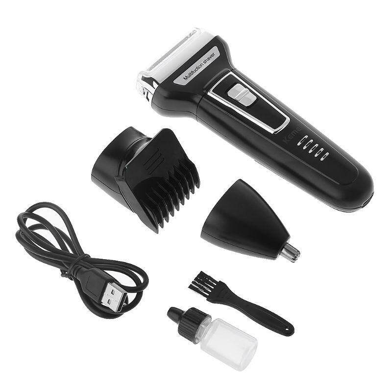 1.Simple,easy for a variety of styles, Use for any ages.2.Import security cutting head,special cleaning mellow and soft of wear and cut.3.Adopted the design, low noise during operation,very slim,but the baby to sleep for a haircut.Clever structural design and technology can be trimmed.4.3in1 grooming,beard,hair and nose trimmer.magic stainless steel blade,cut hair very easy.Silver Pd alloy motor of high rotational speed.5.USB charging, smart display,Dry dual-use electric charge Item Type: Hair Clipper Power: 3W Input Voltage (V): DC 5V Charging method: USB and 2xAA battery(not included) Package Content: 1x Shaver,1 xBarber head,1 x Nose head, 1 x Cleaning Brush, 1 x USB line, 1 x Chinese-English Manual Note: Transition: 1cm=10mm=0.39inch Please allow 1-3mm error due to manual measurement. pls make sure you do not mind before you bid.