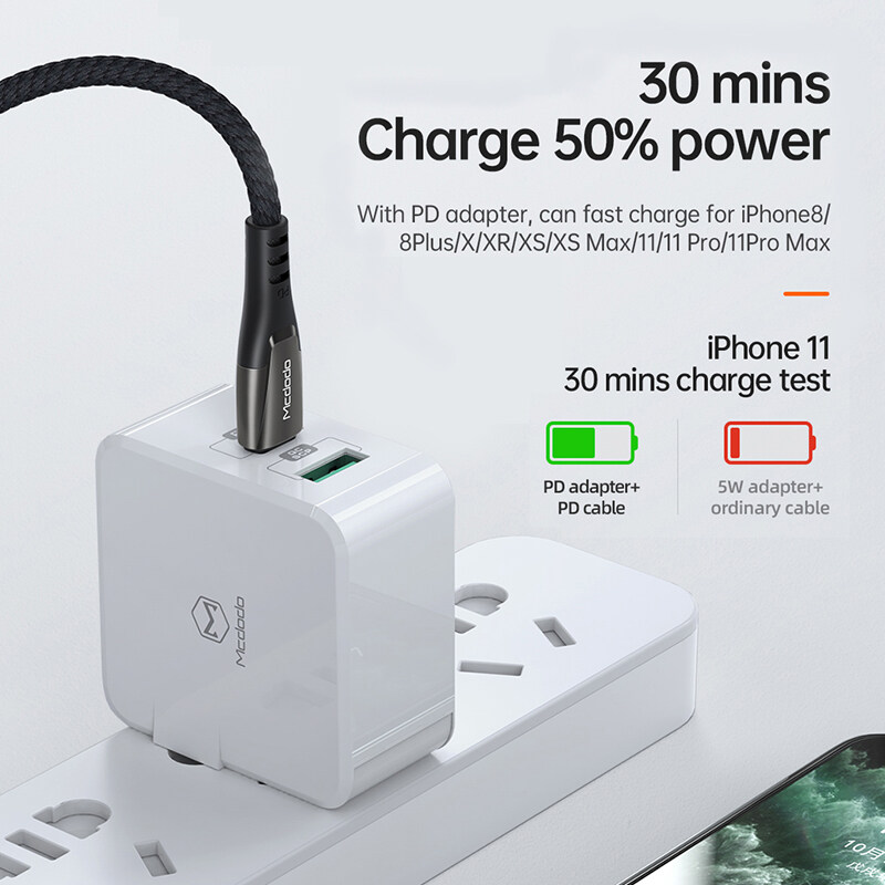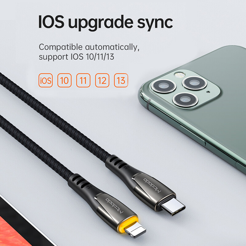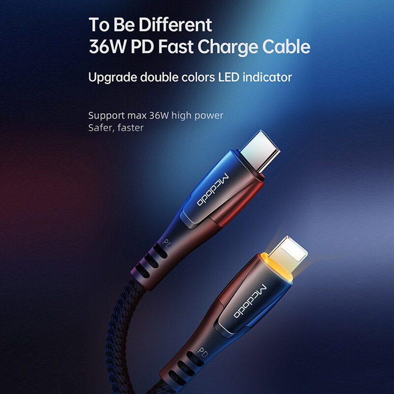 Mcdodo Smart indicator USB-C PD Fast Charging Cable Type C to For Lightning 36W 3A Charger Data USB C to For iPhone XR XS Max 8 11 11pro iphone 12 pro max PD ISO 14 Cable
