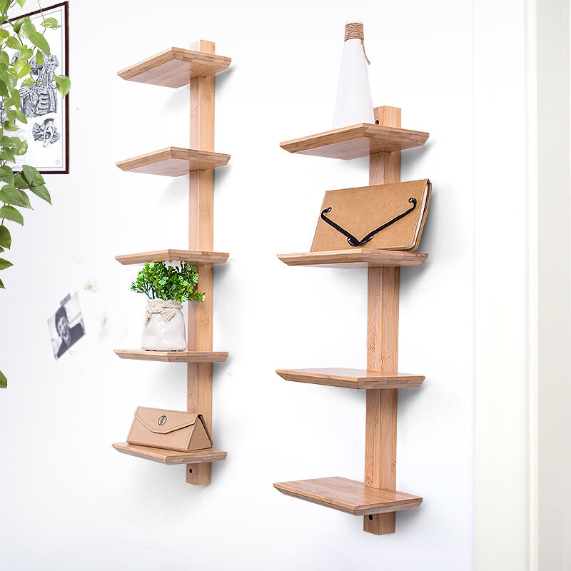 Nordic Ins Partition Solid Wood Storage Rack Kitchen Wall Multi-Layer Bookshelf Bedroom Wall Hanging Shelf Storage Rack