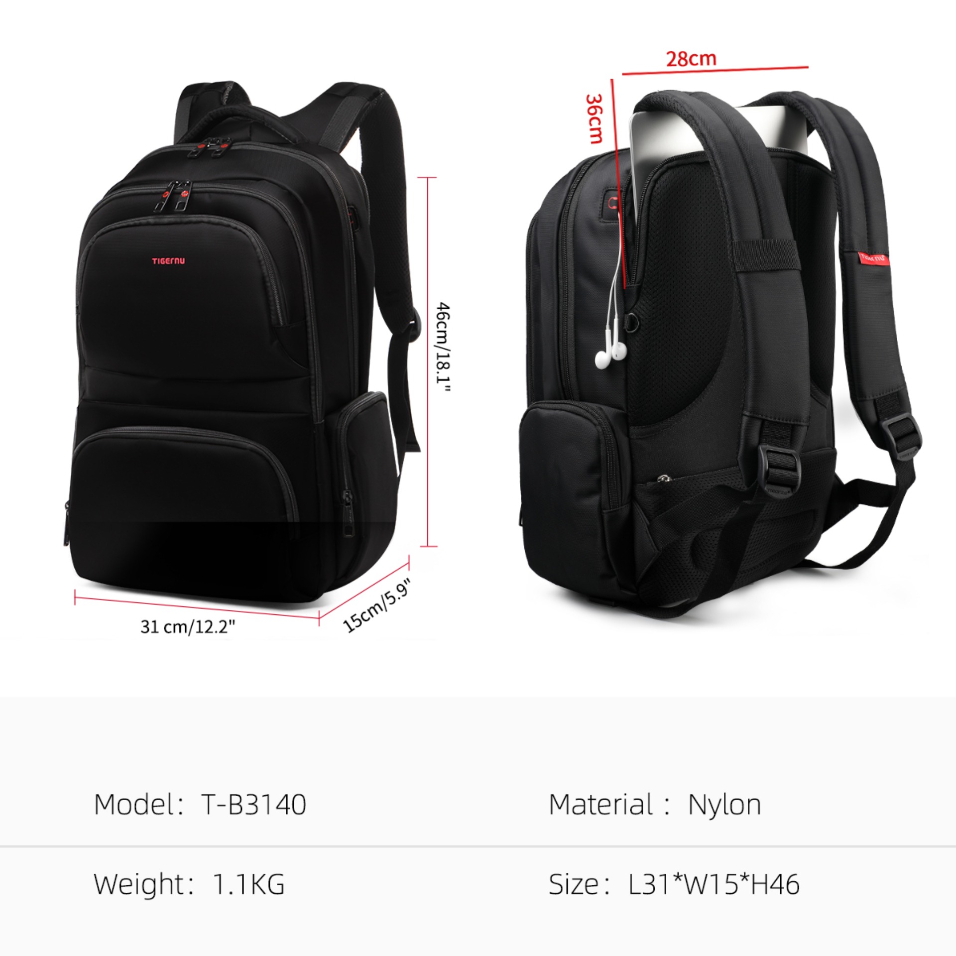 【SHIP FROM MALAYSIA】Tigernu Waterproof Nylon Multi-functional Travel Business Casual Backpack for 12.1-15.6 Laptop T-B3140(black)