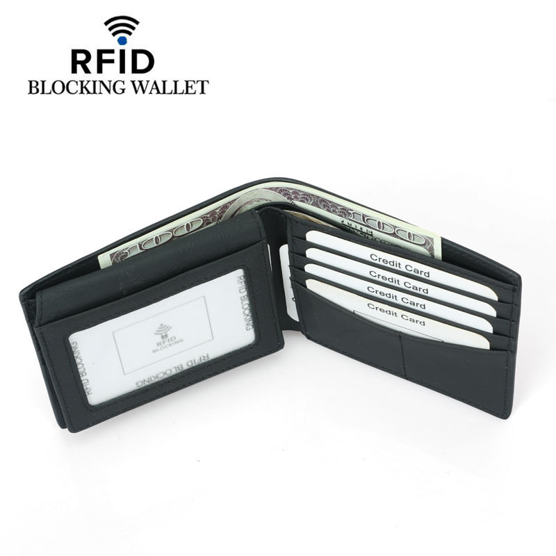 Men Leather Wallet RFID Card Blocking ID Protection Anti-theft Carbon Fiber Wallets Card Holders Money Bag