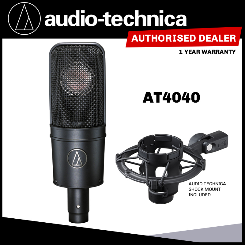 The AT4040 side-address condenser microphone features an advanced large diaphragm tensioned specifically to provide smooth, natural sonic characteristics. A marriage of technical precision and artistic inspiration, the AT4040 offers exceptionally low noise, wide dynamic range and high-SPL capability for greatest versatility.