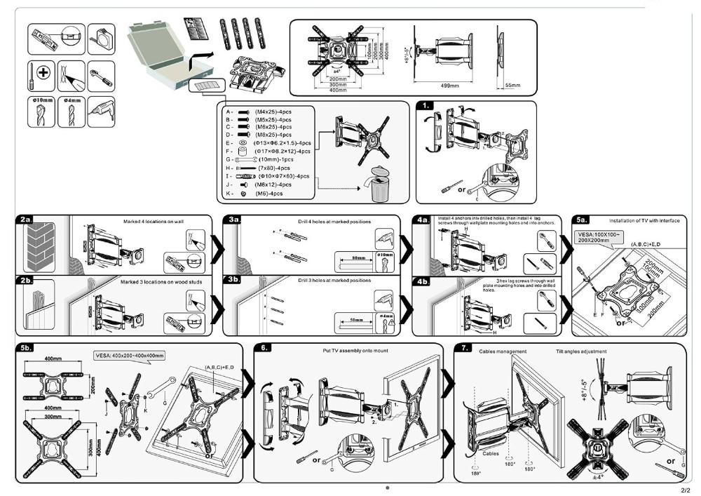 •With this full-motion mount, you can be easy to fix, tilt, extend, fold and rotate your TV and any viewing angle whatever you wanted.