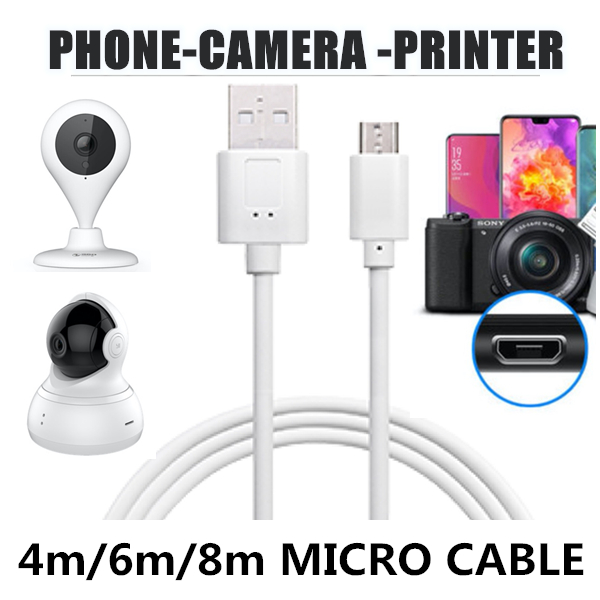 5m 6m 8m Micro USB Microusb Power Cable 360 Xiaomi WiFi Security Camera CCTV Mobile Phone Printer Tablets Charging Data Cable