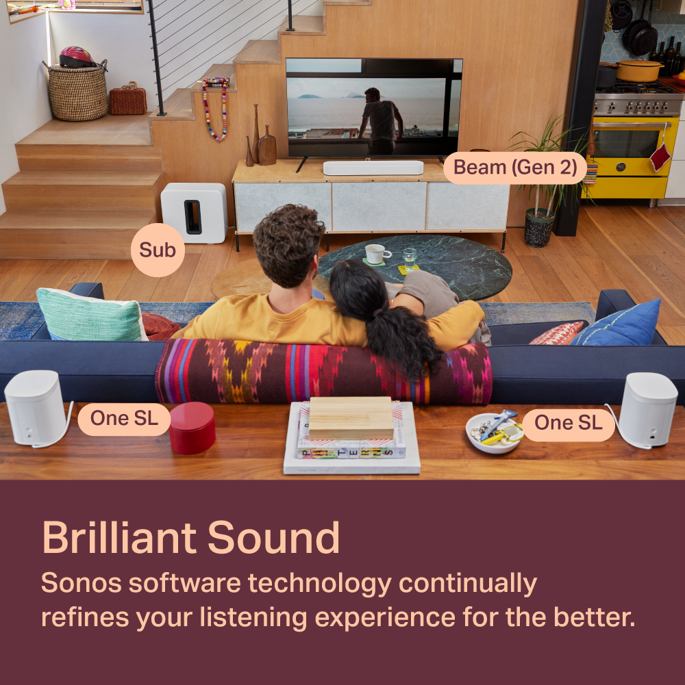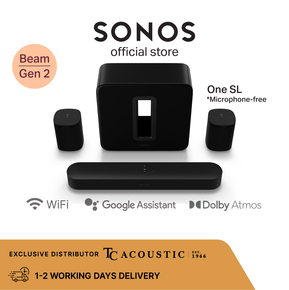 5.1 Sonos Beam (Gen 2) Soundbar For TV With Dolby Atmos Set with One SL and Sub - Wireless Home Theater System