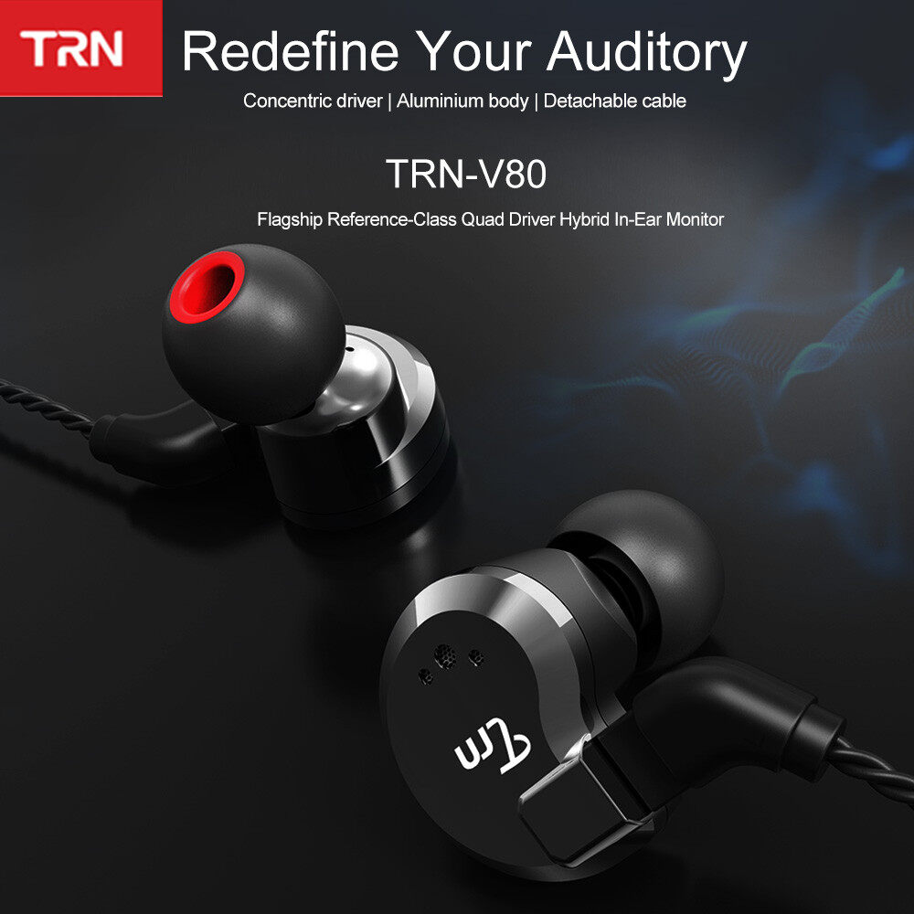 TRN V80 2BA+2DD Hybrid Metal In Ear Earphone HIFI DJ Monito Running Sport Earphone Earplug Headset Detachable Cable AS10\T2\V30