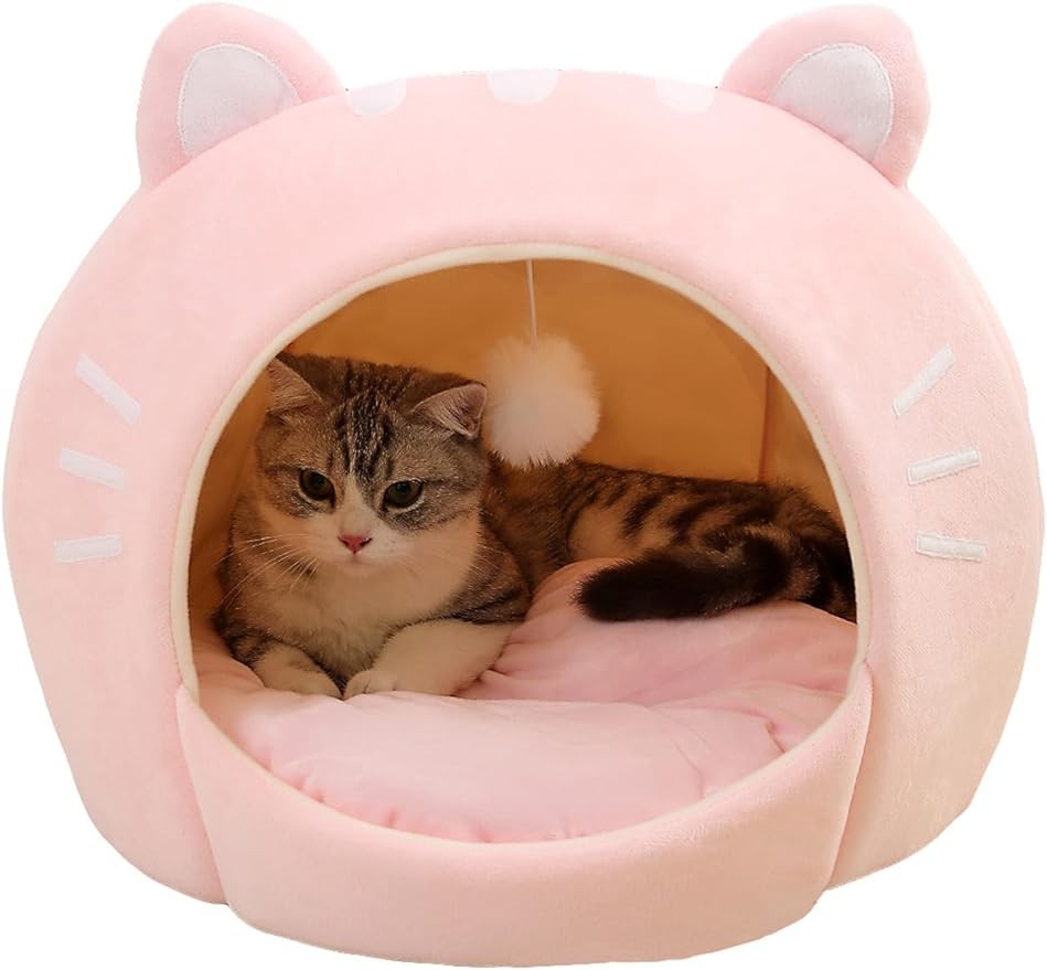 | Model Name | Indoor Cat Bed Cave with Removable Cushion - Pet Plush Tent House Cartoon Ear Design Pet Bed with Pompom for Cats Kitten Dogs Puppy and Rabbit |