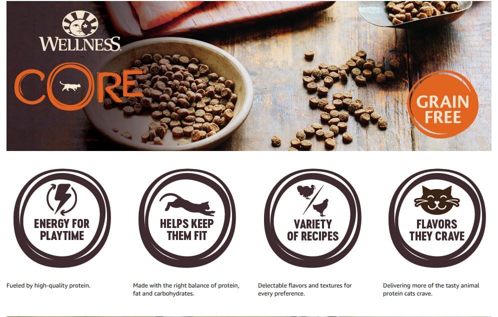 • CATISFACTION PROMISE: Wellness CORE offers a full range of wet and dry food to support your cat's specific cat preferences and needs; with dozens of tastes and textures, we are confident you will find one your feline will love